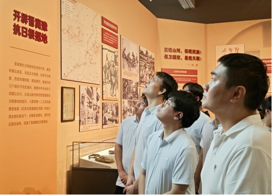 7月23日,分公司黨總支書記賈銀建帶領20余名職工步入河北省博物院“河北抗戰(zhàn)圖片檔案展”展廳,大家的目光隨著歷史脈絡逐步移動。在泛黃的電文手稿、磨損的軍用地圖、定格戰(zhàn)斗瞬間的黑白照片前,不時有人駐足凝視、低聲交流。當看到100多人的八路軍小部隊午夜分工突襲,最終以零傷亡繳獲了敵人一個騎兵連的戰(zhàn)略物資時,安全科侯麗霞拿出手機記錄細節(jié):“先輩們在極其艱苦的條件下能夠想出破敵良策,我們如今面對工作難點更應積極探索破解方法,干出新成效?!眮淼健案鶕?jù)地建設”展區(qū),財務科李召燕指著減租減息和大生產(chǎn)運動的圖片感慨道:“這與我們當前各科室聯(lián)動推進項目工作的目的相同,要團結一心才能推進項目經(jīng)營管理取得更好成效?!眳⑴c活動的黨員干部紛紛表示,將把這份浸潤心靈的感悟轉化為“扎根崗位破難題,聚焦指標抓落實”的實際行動,勇挑重擔。青年職工也鄭重立下“傳承偉大抗戰(zhàn)精神,立足崗位強本領”的承諾,把工作做深做細做扎實,用實干詮釋責任。