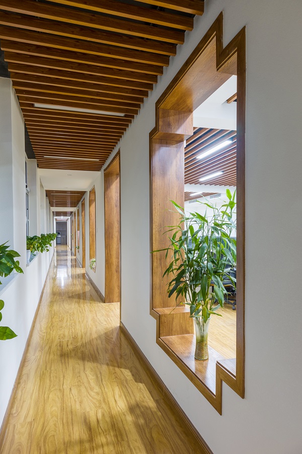 由于辦公區(qū)裸露門洞窗洞較多,極具藝術(shù)感,于是在設(shè)計(jì)風(fēng)格方面設(shè)計(jì)師借鑒了中式古典花窗元素,將四個(gè)窗洞設(shè)計(jì)為不同造型,曲直轉(zhuǎn)折均一絲不茍,淋漓盡致地展現(xiàn)出中式古典花窗的特點(diǎn),使得簡潔的空間多了一絲東方韻味。這樣舒適雅致的辦公環(huán)境更能激發(fā)設(shè)計(jì)師的創(chuàng)作靈感,讓設(shè)計(jì)師創(chuàng)作出更好的設(shè)計(jì)作品。