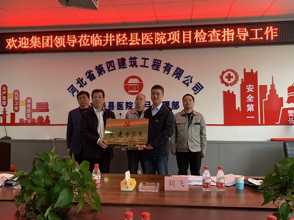 10月27日,集團(tuán)黨委副書記張慶虎、黨委組織部部長(zhǎng)張秋英、黨委組織部劉飛等一行三人到省四建二分公司井陘縣醫(yī)院項(xiàng)目黨支部進(jìn)行黨建示范點(diǎn)驗(yàn)收授牌。公司黨委副書記、紀(jì)委書記、工會(huì)主席李懷生,黨委組織部部長(zhǎng)王彥森,分公司黨總支書記孫立鋒一同參加。