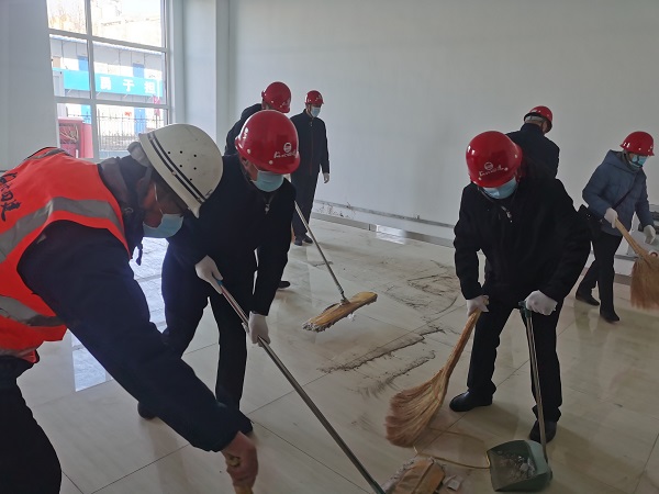 一到現(xiàn)場(chǎng),黨員們就摩拳擦掌、躍躍欲試。項(xiàng)目經(jīng)理首先向?qū)O長(zhǎng)虹一行簡(jiǎn)單介紹了項(xiàng)目基本情況和現(xiàn)場(chǎng)安全注意事項(xiàng)后,省直工會(huì)的黨員們就戴上安全帽,直奔輔助工房三區(qū)。他們手持拖布、笤帚在一層室內(nèi)清理地板磚、整理雜物、倒運(yùn)垃圾,干得熱火朝天。大家不顧室內(nèi)的灰塵,認(rèn)真地清理著地面上的雜物、清掃著每個(gè)角落。經(jīng)過(guò)緊張工作,黨員們把三區(qū)一層房間和走廊打掃得干干凈凈,把裝飾材料、防水材料等雜物碼放得整齊有序?,F(xiàn)場(chǎng)工人看到黨員們不怕臟,不怕累的勞動(dòng),都紛紛稱(chēng)贊。勞動(dòng)結(jié)束,在業(yè)主的帶領(lǐng)下,孫長(zhǎng)虹、李懷生等黨員參觀了已經(jīng)完工、正在試運(yùn)行的制梗生產(chǎn)線。