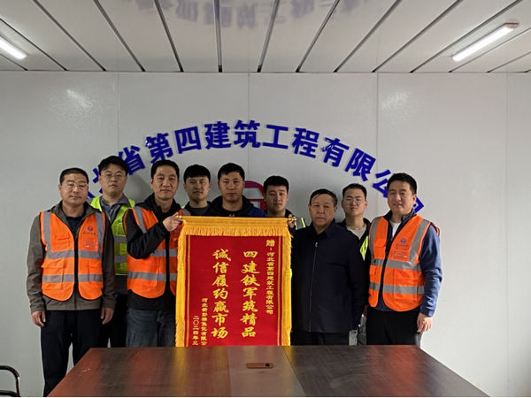 3月29日上午,河北普陽鋼鐵集團(tuán)新彭楠焦化有限公司副總經(jīng)理李文秀、新彭楠焦化項(xiàng)目負(fù)責(zé)人王磊,來到河北四建三分公司新彭楠焦化項(xiàng)目部會議室,感謝項(xiàng)目部春節(jié)不停工保送煤,高質(zhì)量地完成節(jié)點(diǎn)任務(wù),并鄭重地將寫有“四建鐵軍筑精品 誠信履約贏市場”的錦旗送到正在項(xiàng)目檢查的分公司經(jīng)理李書偉的手中。三分公司副經(jīng)理劉贊敏、項(xiàng)目部經(jīng)理甄雄浩等一同參加。