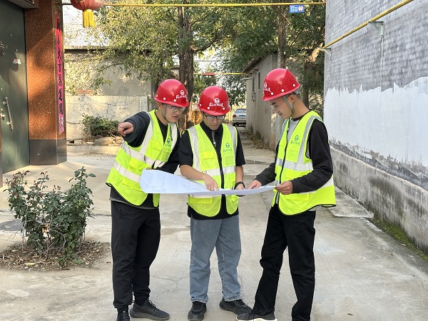 因地下管線復(fù)雜,施工中,難免會(huì)出現(xiàn)挖斷地下管道的情況,如果被挖斷的管道不能及時(shí)得到修復(fù),會(huì)影響村民用水。為最大限度減輕施工對(duì)村民生活的影響,項(xiàng)目部做實(shí)做細(xì)施工前的準(zhǔn)備工作,先聯(lián)系熟悉原敷設(shè)管道的村民,摸清摸透地下管道具體位置后再開(kāi)挖,如遇敷設(shè)管線較多的部位,安排技術(shù)嫻熟的師傅人工挖掘安裝管道,同時(shí)安排人員準(zhǔn)備好搶修的材料管件,一旦挖斷管道,立即現(xiàn)場(chǎng)搶修。在同一現(xiàn)場(chǎng)施工的其它單位幾乎每天都有因耽誤村民用水被投訴的情況,元氏管網(wǎng)項(xiàng)目施工的標(biāo)段很少發(fā)生?!肮軠贤诘蒙?、回填干得快,而且,很少耽誤俺們用水。”監(jiān)理單位到現(xiàn)場(chǎng)檢查時(shí)聽(tīng)到老百姓對(duì)元氏管網(wǎng)項(xiàng)目部如此評(píng)價(jià)。甲方也經(jīng)常在微信工作群夸贊該項(xiàng)目部施工的標(biāo)段是“放心工地”。