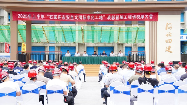 6月26日,2025年上半年“石家莊市安全文明標(biāo)準(zhǔn)化工地”表彰暨施工現(xiàn)場(chǎng)觀摩大會(huì)在二分公司西三教城中村改造回遷項(xiàng)目舉行。石家莊市住房和城鄉(xiāng)建設(shè)局副局長(zhǎng)蘇西彥、河北省建筑業(yè)協(xié)會(huì)副會(huì)長(zhǎng)李同澤、石家莊市建筑協(xié)會(huì)執(zhí)行會(huì)長(zhǎng)王洪祥、石家莊市建筑協(xié)會(huì)安全專業(yè)委員會(huì)秘書長(zhǎng)劉振波、河北建工集團(tuán)安全管理部部長(zhǎng)柴竑、公司副總經(jīng)理劉金河,石家莊市住建集團(tuán)建筑工程有限公司安全主管、石家莊市建筑協(xié)會(huì)安全專業(yè)委員會(huì)副秘書長(zhǎng)王靜等領(lǐng)導(dǎo),以及來自全市建筑行業(yè)近200名同仁參與會(huì)議并觀摩。