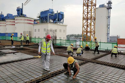 同心協(xié)力完成節(jié)點(diǎn)任務(wù)。水泥配料站、水泥粉磨是業(yè)主目前關(guān)注重點(diǎn),要求8月3日前筒倉(cāng)滑模到14.4米庫(kù)底板、水泥粉磨11.5米平面混凝土澆筑完,為安裝輥壓機(jī)、減速機(jī)等設(shè)備創(chuàng)造條件。時(shí)間緊任務(wù)急,持續(xù)的降雨反而更加激發(fā)了項(xiàng)目部的斗志,水泥配料站筒倉(cāng)施工采用滑模工藝,滑模平臺(tái)上鋼筋綁扎、預(yù)留預(yù)埋安裝、混凝土澆筑、庫(kù)壁壓面等各道工序相互配合,工種銜接默契。雖然雨水經(jīng)常光顧,但是大家沒(méi)有絲毫懈怠,熱火朝天的干勁兒始終未減。水泥粉磨車(chē)間樓層高、場(chǎng)地狹窄給施工造成困難,項(xiàng)目部采用白天作業(yè)面施工,晚上班組倒運(yùn)材料等方法,保證施工進(jìn)度。截至7月30日上午,水泥配料站14米庫(kù)底板、水泥磨11.5米平面、水泥及礦粉儲(chǔ)存基礎(chǔ)筏板均已澆筑完混凝土,為項(xiàng)目下一步施工創(chuàng)造了積極有利條件。(三分公司)