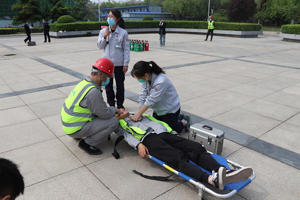 上午10點(diǎn),消防救援支隊(duì)講解員對全體人員進(jìn)行消防安全知識培訓(xùn),詳細(xì)講解了防煙面罩正確佩戴方法、疏散逃生要領(lǐng),以及滅火器的使用方法和注意事項(xiàng)。10點(diǎn)半左右,演練正式開始,施工現(xiàn)場三區(qū)二層濃煙滾滾,“著火了,著火了¨¨¨”項(xiàng)目安全員在現(xiàn)場巡查時發(fā)現(xiàn)火情高聲呼喊,周圍施工人員迅速拿滅火器進(jìn)行滅火,項(xiàng)目經(jīng)理張玉賓接到險(xiǎn)情后馬上通知義務(wù)消防隊(duì)員滅火并組織緊急疏散。大家用濕毛巾捂住口鼻,俯身低頭按照演練逃生路線快速從現(xiàn)場撤離到演練集合區(qū)。在大家撤離火災(zāi)現(xiàn)場的同時,救援組孫杰、楊克、董擁軍等人把傷員抬到通風(fēng)處,他們在醫(yī)療救護(hù)組的指導(dǎo)下,用雙手拍打傷者雙肩并呼叫他的名字、用觸摸頸動脈等方法斷傷者是否喪失意識,并進(jìn)行心肺復(fù)蘇。心肺復(fù)蘇演練時,按壓胸部是最有效也是最常用的辦法,施救人員首先在傷者兩乳頭連線中間,胸骨中下三分之一處找準(zhǔn)按壓點(diǎn),然后用手掌根部緊貼傷者胸部,兩手重疊,五指相扣,手指翹起,肘關(guān)節(jié)伸直,用上身重量垂直下壓30次,經(jīng)過救治傷者最終蘇醒,整個搶救過程有條不紊,最后藁城區(qū)消防救援大隊(duì)長張海寧對應(yīng)急預(yù)案演練進(jìn)行了點(diǎn)評,此次火災(zāi)應(yīng)急預(yù)案演練圓滿結(jié)束。