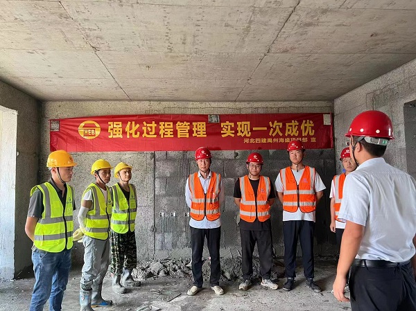 “為了強(qiáng)化全員質(zhì)量意識(shí),弘揚(yáng)工匠精神,促進(jìn)操作技能、管理技能提升,現(xiàn)開(kāi)展質(zhì)量月技能競(jìng)賽……”項(xiàng)目主管師蔡昭作為總裁判作了賽前動(dòng)員,宣布了比賽內(nèi)容、規(guī)則、程序、評(píng)分標(biāo)準(zhǔn)等,今年新入職職工、部分作業(yè)工人及工長(zhǎng)觀賽。