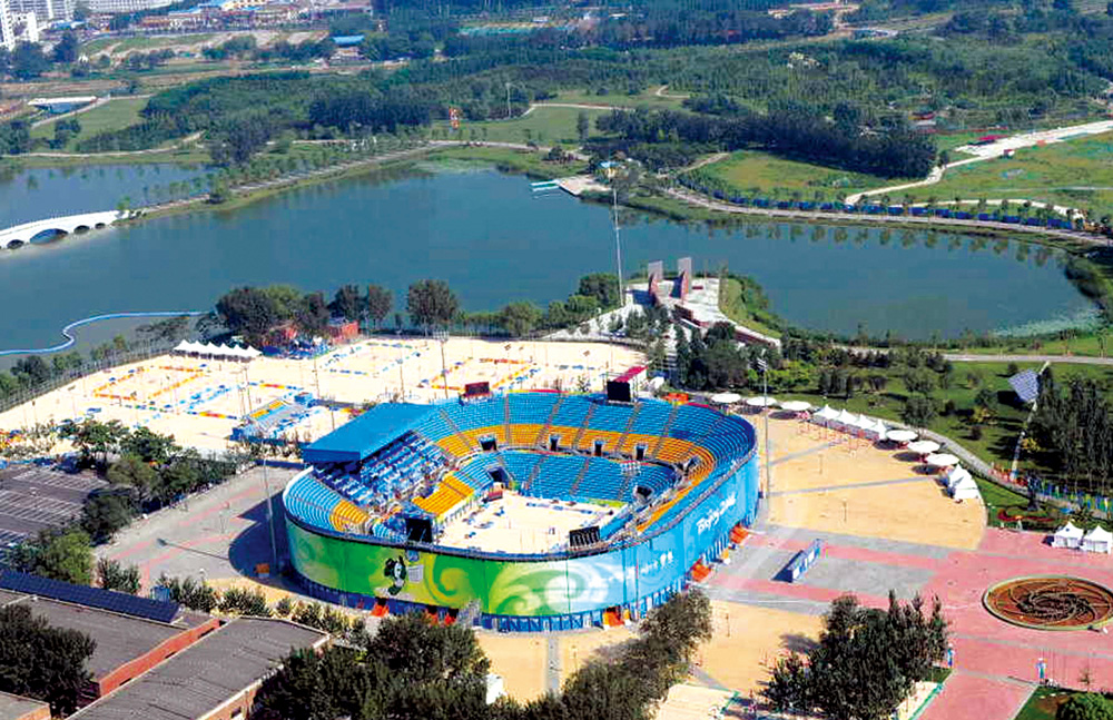 朝陽公園沙灘排球場為2008年北京奧運(yùn)場館工程,位于北京市朝陽區(qū)朝陽公園內(nèi),整個(gè)工程由以下項(xiàng)目組成:一座12000座位的比賽臨時(shí)場館、兩塊熱身場地,其中一塊配200座位的媒體專用席位、六塊訓(xùn)練場地、三座既有建筑物改造工程、室外廣場、道路硬化、市政管線等,工程包括2萬㎡人造沙灘和7萬㎡廣場地面塊材鋪設(shè)。河北省第四建筑工程有限公司施工總承包。