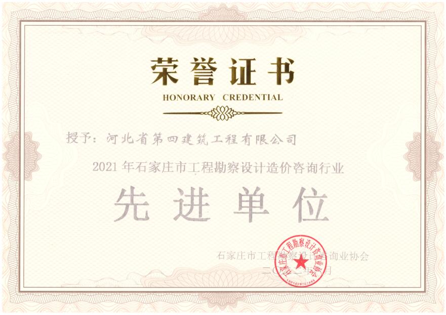 石家莊市工程勘察設計造價咨詢行業(yè)先進單位