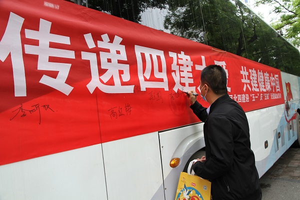 4月28日下午2點(diǎn),在公司門口,一輛懸掛有“傳遞四建大愛、共建健康中國”紅色條幅的白色獻(xiàn)血車,和門口正上方的“河北四建”四個(gè)紅色大字相互映襯,顯得格外醒目;一條由四建職工組成的隊(duì)伍“長龍”,正在徐徐向前移動(dòng)著。此時(shí),由公司黨委宣傳部和團(tuán)委聯(lián)合組織的以“傳遞四建大愛、共建健康中國”為主題的迎“五一”慶“五四”無償獻(xiàn)血活動(dòng),正在有條不紊進(jìn)行中。公司機(jī)關(guān)以及附近片區(qū)的各單位職工共計(jì)48人參與。