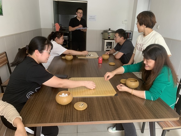 轉(zhuǎn)場來到“以棋會友,其樂無窮”的五子棋比賽現(xiàn)場,比賽在自由組合的七個小組之間進(jìn)行,兩兩一組對弈,(。)經(jīng)過層層比拼,決出了比賽的獲勝者。對弈過程中選手每走一步都深思熟慮,慎之又慎。低頭看向棋盤,黑子白子交錯之中,仿佛有無數(shù)的機(jī)關(guān),橫向、縱向、斜向的棋子令人眼花繚亂?!皺M看成嶺側(cè)成峰”,這些棋子復(fù)雜的排列更加考驗(yàn)了參賽者的觀察能力。大家相互切磋交流,提高了棋技,也增進(jìn)了彼此間的感情。