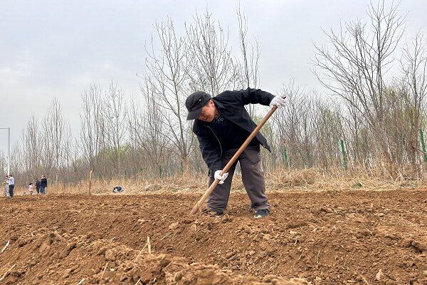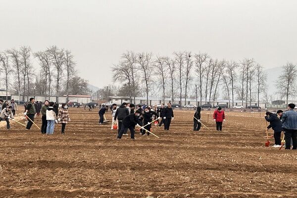 “先把自家的地壟耙起來(lái),然后把地?fù)剑 痹诜N植基地,不時(shí)傳來(lái)李懷生指導(dǎo)大家的聲音,各單位積極響應(yīng),熱火朝天地掄起耙子等農(nóng)具,在各自地塊開(kāi)始了種植前的準(zhǔn)備工作。當(dāng)李懷生請(qǐng)來(lái)種植基地的技術(shù)人員時(shí),大家紛紛上前認(rèn)真聽(tīng)講。技術(shù)人員向大家詳細(xì)講解了針對(duì)不同種子如何掌握挖坑深度、種植方式、覆膜等需要注意的事項(xiàng)后,大家個(gè)個(gè)干勁十足,全身心地投入到播種當(dāng)中。種植完成后,大家打開(kāi)澆灌的水龍頭,咕咕的水流進(jìn)了耙好的一塊塊地畦里,這一刻,大家共同的期待一定是在這片土地上,能夠看到這些綠色蔬菜的成長(zhǎng)與豐收。