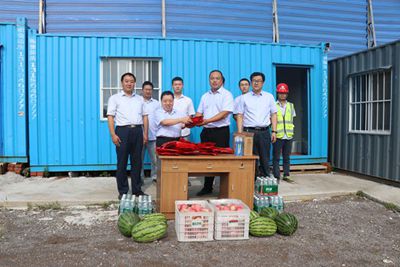 上午8點,公司滿載茶葉、西瓜、蘋果、花露水等慰問品的商務(wù)車緩緩開進職工生活區(qū),李懷生一邊給職工發(fā)放慰問品一邊關(guān)心地詢問他們的生活和工作情況,并叮囑他們有困難和問題及時向項目部反映,還要求項目部一定要做好職工的后勤保障,讓大家消除后顧之憂。