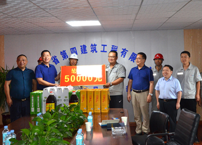 8月5日,河北省省直工會(huì)副主任馬永紅、辦公室主任馬濤,冒雨到四分公司石鋼項(xiàng)目部進(jìn)行暑期慰問,為項(xiàng)目職工送上五谷雜糧、食用油等物品及慰問金。省四建公司黨委書記、董事長董富強(qiáng),黨委副書記、工會(huì)主席李懷生一同參加。