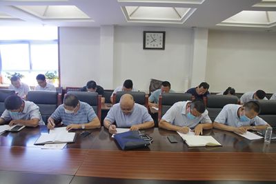 7月20日上午,各分公司生產(chǎn)經(jīng)理、安全科科長(zhǎng)共20余人,在公司三樓會(huì)議室或奮筆疾書、或凝神思考,正在緊張答題。這是公司七月份安全生產(chǎn)專題會(huì)考試環(huán)節(jié)的一幕。