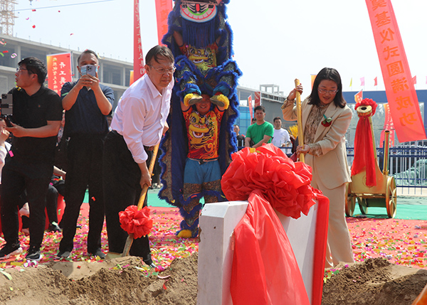 發(fā)言結(jié)束后,主席臺上的主要領導及嘉賓移步到啟動桿前,在主持人指令下,緩緩推動了開工儀式啟動桿。最后大家一同拿起鐵鍬為項目奠基碑培上第一鏟土,宣告項目動工興建正式開始,現(xiàn)場頓時掌聲雷動,禮炮齊鳴,挖掘機、翻斗車等機械設備鳴笛慶賀,將開工典禮儀式推向高潮。