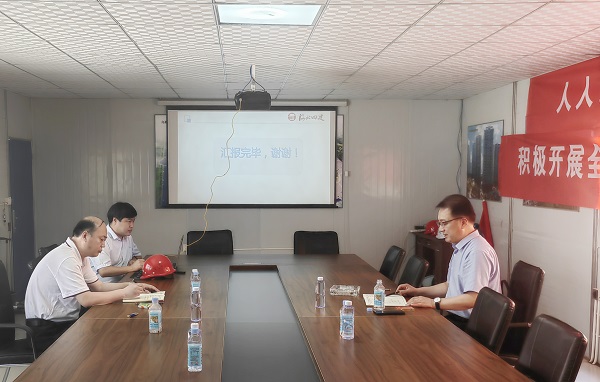 在項目會議室,董富強首先聽取了項目部關(guān)于進度、安全、質(zhì)量、文明施工等情況的匯報。他邊聽邊記,邊聽邊問,“施工進度怎么保證?”“創(chuàng)優(yōu)目標(biāo)如何實現(xiàn)?”……他問得很細,記得認真,反復(fù)強調(diào)施工任務(wù)要再細化,務(wù)必卡緊節(jié)點,創(chuàng)優(yōu)工作要再深入,務(wù)必措施到位。在項目施工現(xiàn)場,董富強實地了解工程進展情況并進行指導(dǎo)。正值全國“安全生產(chǎn)月”活動開展之際,董富強要求項目部提高政治站位,壓緊壓實責(zé)任,落細落實管控措施,確保施工安全。