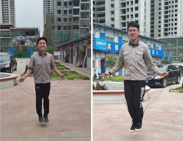 各項目部根據(jù)場地條件自行制定比賽內(nèi)容,讓職工們自由選擇,有羽毛球、跳繩、踢毽子等。所有活動中比較熱鬧的有許昌項目部的跳繩比賽,青年職工回軍帥、唐文耀、李詩奇、劉彥、肖博文等兩人搖、多人魚貫順序跳的長繩賽,李政良,高巖單人雙手搖、自搖自跳的短繩賽,他們配合協(xié)條性好,單次跳的數(shù)量最多,迎來場外職工陣陣喝彩。