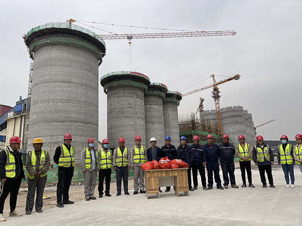4月29日上午,業(yè)主安丘山水水泥有限公司領(lǐng)導(dǎo)帶著三百余斤豬肉等慰問(wèn)品,專程來(lái)到三分公司山東安丘山水項(xiàng)目慰問(wèn),感謝項(xiàng)目部克服困難提前4天完成水泥儲(chǔ)存庫(kù)、水泥配料站滑模施工。