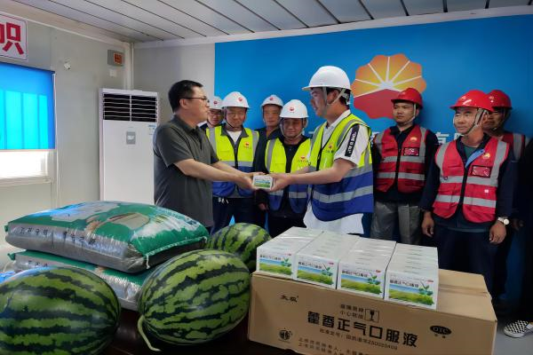 因近日持續(xù)高溫,現(xiàn)場(chǎng)的施工環(huán)境給堅(jiān)守一線的施工人員帶來了嚴(yán)峻“烤”驗(yàn),也時(shí)刻牽動(dòng)著分公司領(lǐng)導(dǎo)的心。6月12日,分公司黨支部書記、工會(huì)主席臧聯(lián)合到項(xiàng)目部詳細(xì)了解一線人員工作和生活情況,檢查消防和防暑降溫工作,為大家發(fā)放了西瓜、綠豆、藿香正氣口服液等防暑物品,為高溫下堅(jiān)守崗位的項(xiàng)目職工帶來了“娘家人”的問候和關(guān)懷,并叮囑大家要在保障自身安全前提下完成好項(xiàng)目工作。