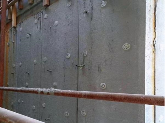 為此,項(xiàng)目部成立專門的課題實(shí)施小組,提出利用BIM技術(shù)繪制Revit模型,對(duì)復(fù)合保溫板進(jìn)行統(tǒng)一建模排版、分拆、編號(hào)、加工制作,再采用“三合一”技術(shù)創(chuàng)新方法開(kāi)展施工:一是基于3D打印技術(shù),設(shè)計(jì)了一種帶卡槽結(jié)構(gòu)的新型墊塊,來(lái)控制鋼筋混凝土保護(hù)層厚度,二是制作加固直板,確保復(fù)合保溫板陰陽(yáng)角施工質(zhì)量,三是采取螺栓孔洞內(nèi)填充防水砂漿、保溫砂漿封堵等措施,不僅增強(qiáng)了墻體的性能,還提高了外墻防滲防漏水性能,共同形成了“FW-Ⅲ復(fù)合保溫板與模板一體化支設(shè)工藝”科研成果。